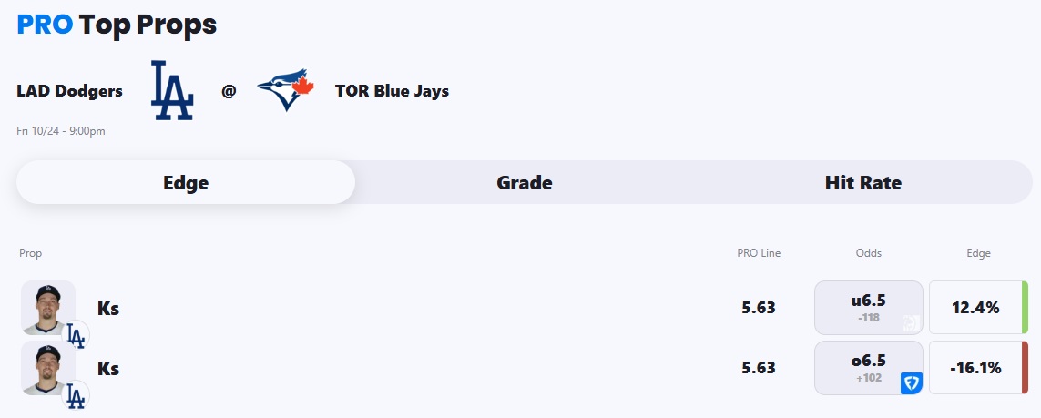PRO projects Dodgers starter Blake Snell with 5.63 strikeouts tonight, which represents an excellent 12.4% edge against the market.