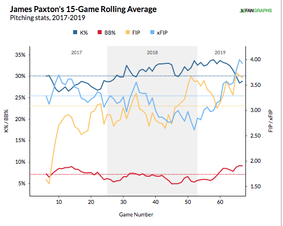 Paxton has hit a bump in the road, due in part to the decreased tunneling effectiveness of his fastball and cutter. However, he did strike out 11 Rays in his most recent outing before the All-Star Break.