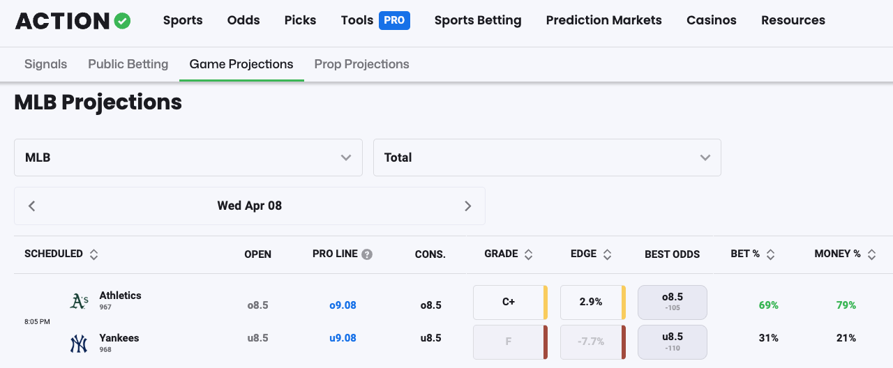 As a reminder, you can see all of Zerillo's MLB game projections with an Action PRO Subscription. Find his projected lines every day on the PRO Projections tab.