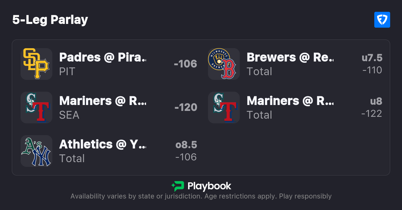 Specific betting recommendations come from the sportsbook offering preferred odds as of writing. Always shop for the best price using our MLB Odds page, which automatically surfaces the best lines for every game. | ||