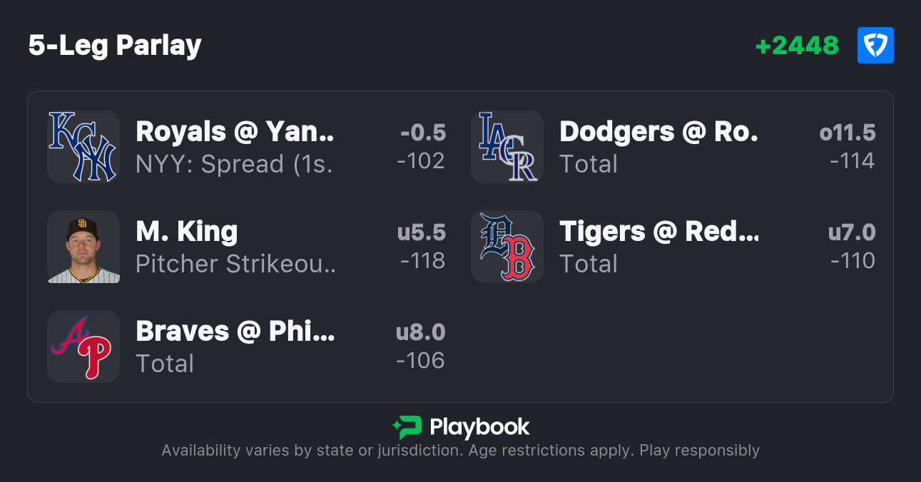 Specific betting recommendations come from the sportsbook offering preferred odds as of writing. Always shop for the best price using our MLB Odds page, which automatically surfaces the best lines for every game. | ||