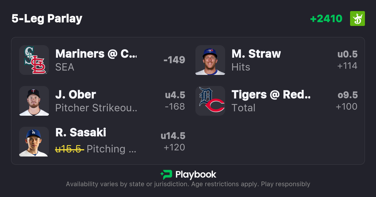 The only case for Sasaki pitching deep, beyond a lucky outing, is the Dodgers being stretched thin with starters in case he struggles. Justin Wrobleski would be the obvious "long man" if every SP were at full strength, but their utilization of a six-man rotation makes that unlikely.