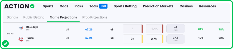 As a reminder, you can see all of Zerillo's MLB game projections with an Action PRO Subscription. Find his projected lines every day on the PRO Projections tab.