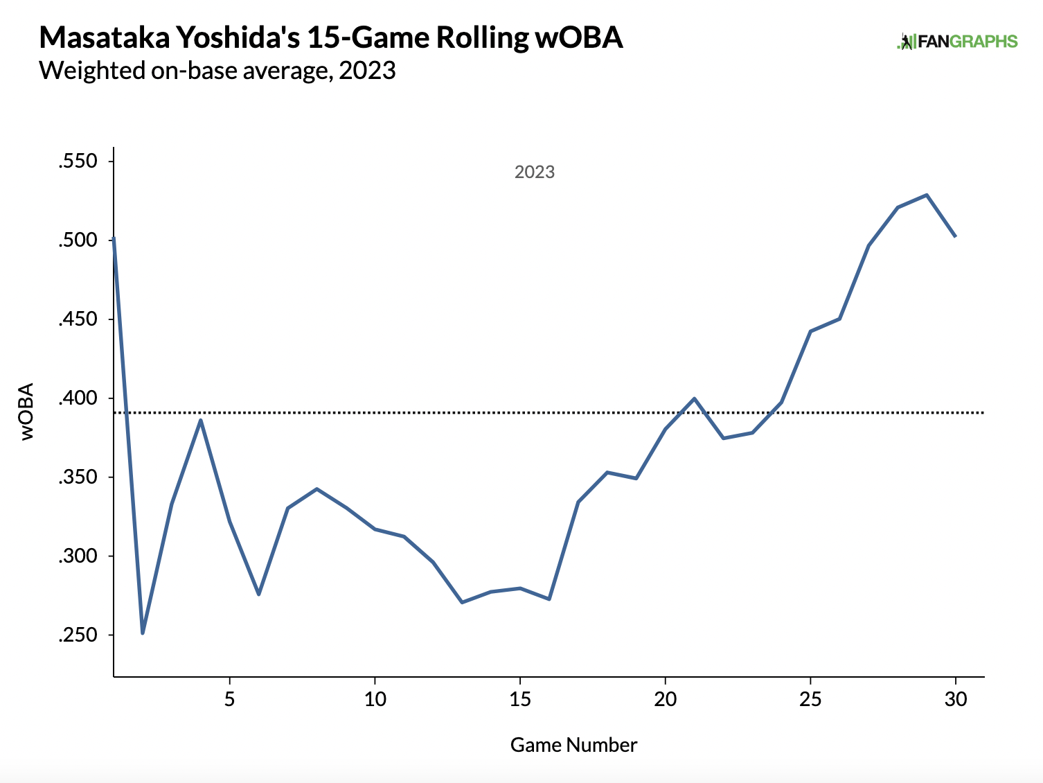 Yoshida’s first month in the majors is a rollercoaster of epic proportions. It’s not even a rollercoaster but more a halfpipe — a steep descent into a rapid ascent.