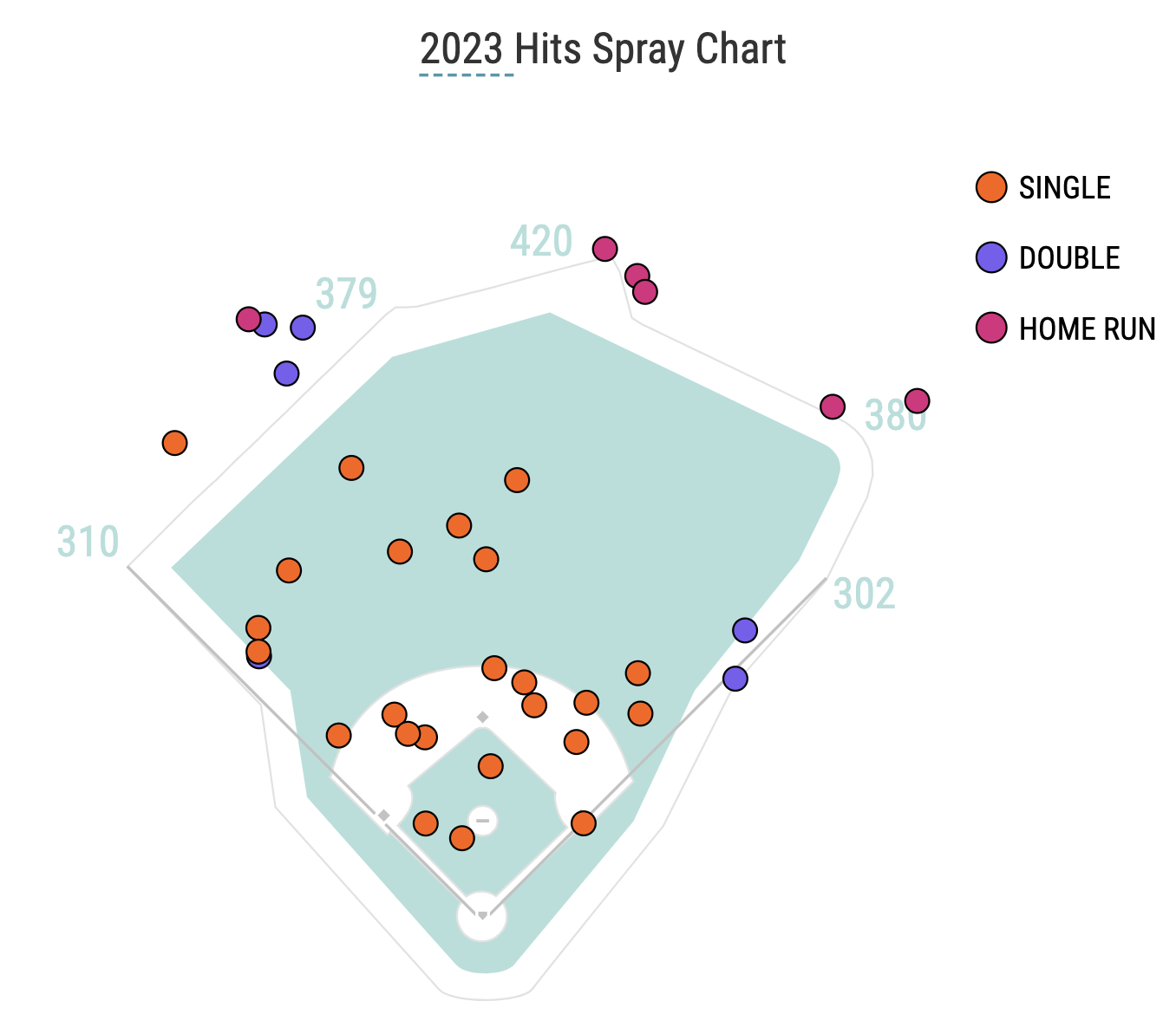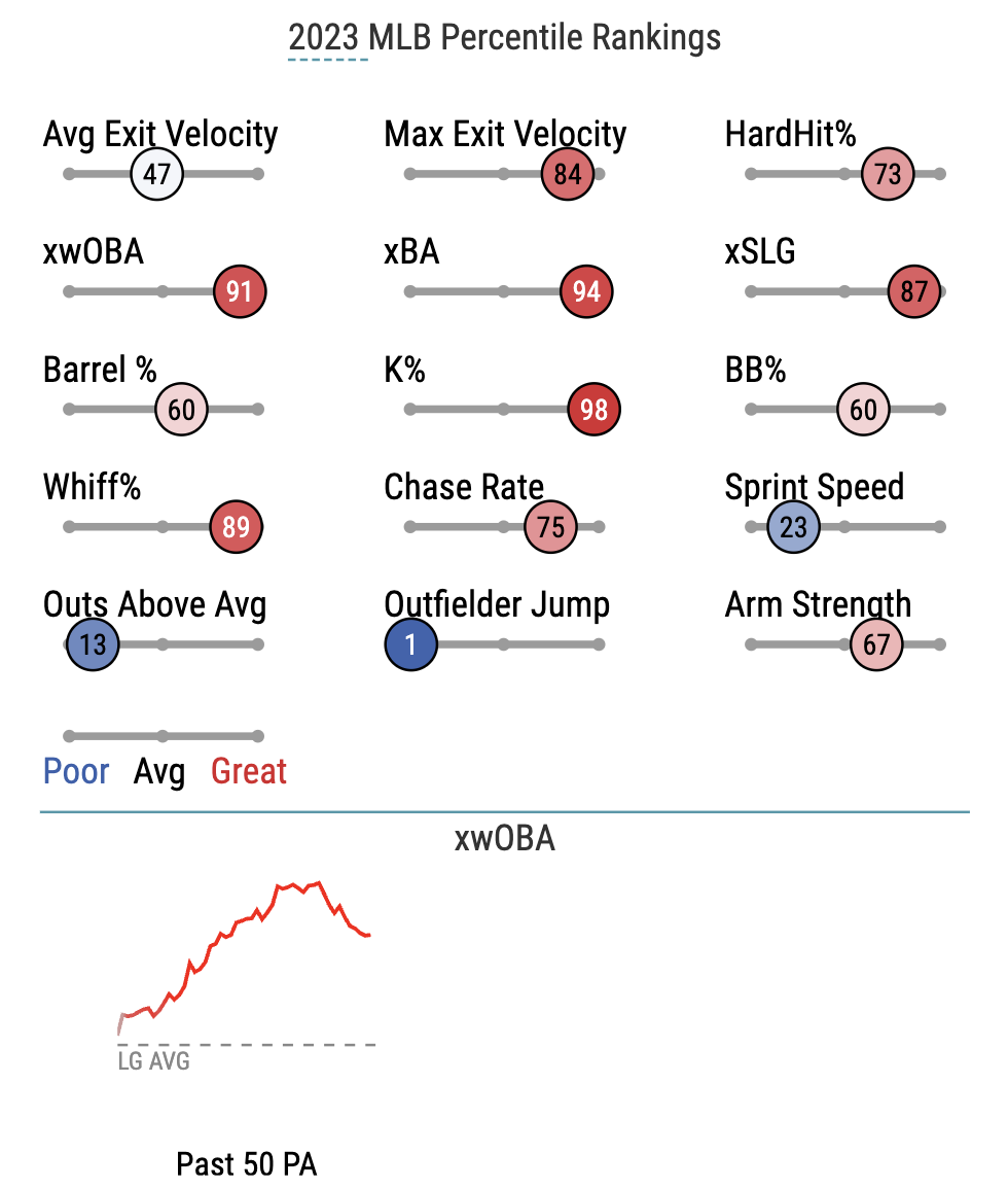 His ability to make contact with everything is equally as impressive. He’s not Luis Arraez, but he boasts a contact rate of around 83.5%.