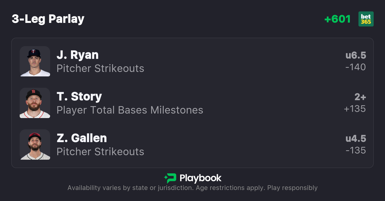 - Joe Ryan Under 6.5 Strikeouts (-140, bet365)