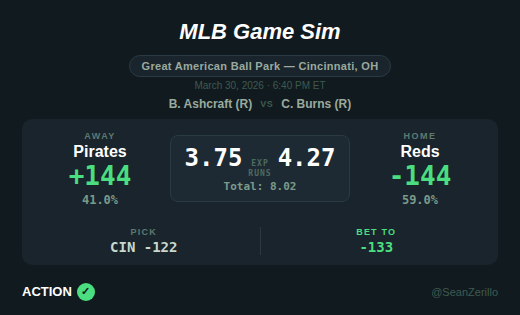 The goal for Opening Pitch is to highlight top daily projection edges for MLB moneylines and totals, share my favorite bets and props, and provide some betting notes and analysis. For Monday, I preview Pirates-Reds, Athletics-Braves, and Tigers-Diamondbacks.
