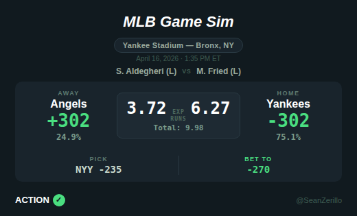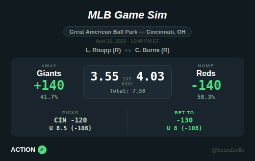 The goal for Opening Pitch is to highlight top daily projection edges for MLB moneylines and totals, share my favorite bets and props, and provide some betting notes and analysis. For Thursday, I preview Giants-Reds, Royals-Tigers, and Angels-Yankees.