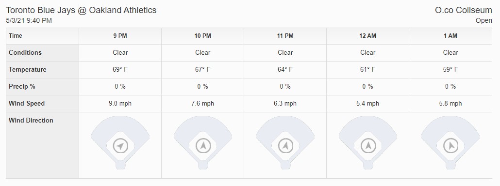Toronto Blue Jays at Oakland Athletics, 9:40 p.m. ET