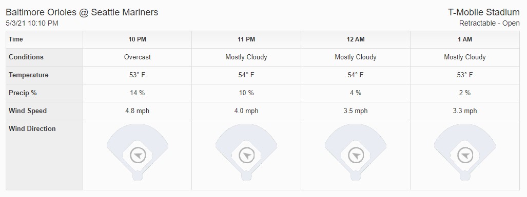 Baltimore Orioles at Seattle Mariners, 10:10 p.m. ET