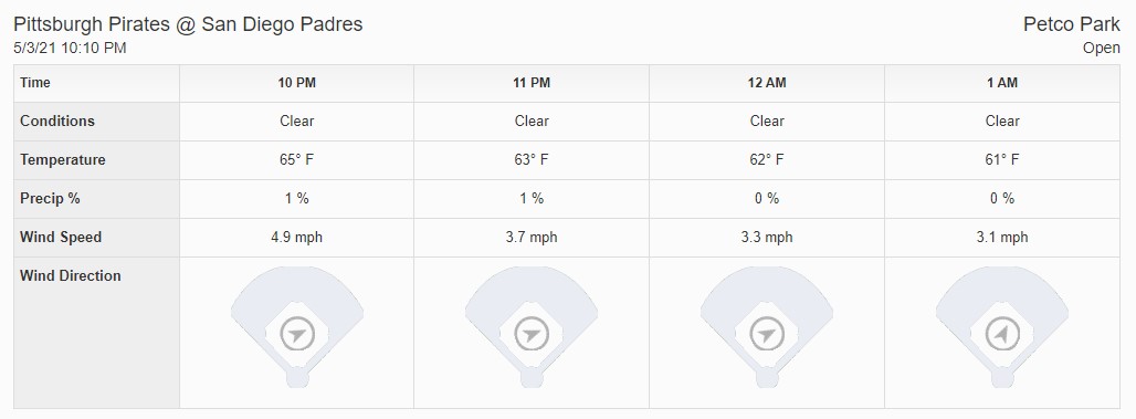 Pittsburgh Pirates at San Diego Padres, 10:10 p.m. ET