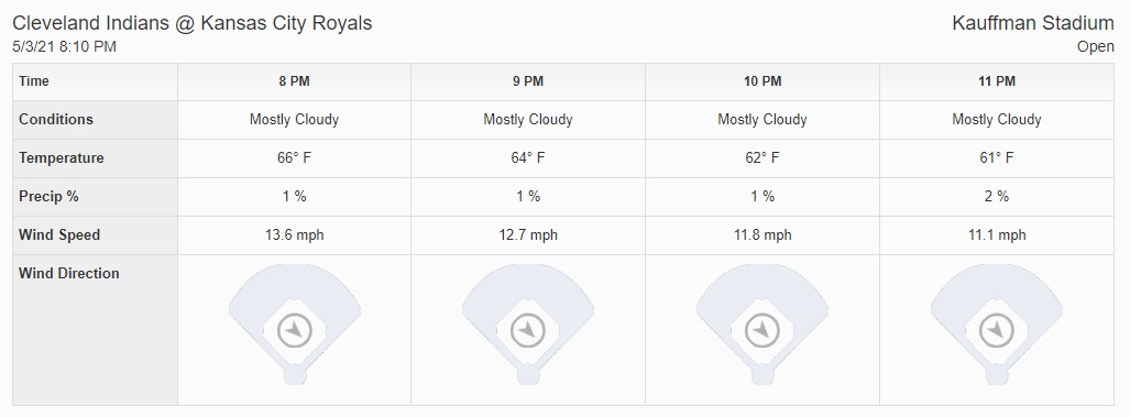Cleveland Indians at Kansas City Royals, 8:10 p.m. ET