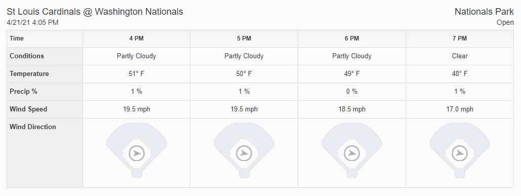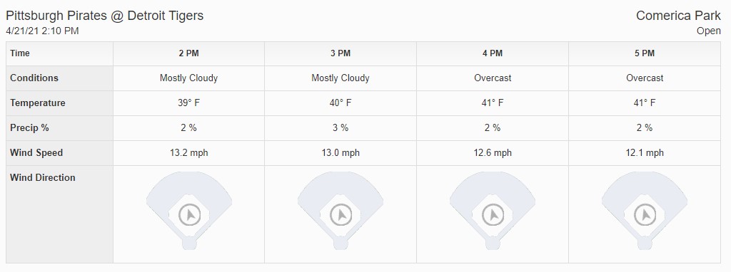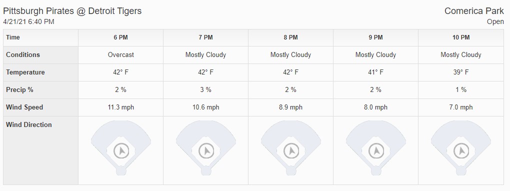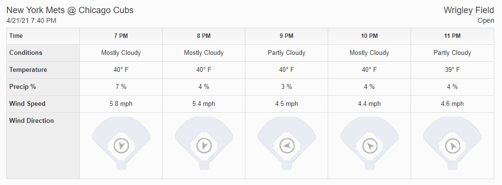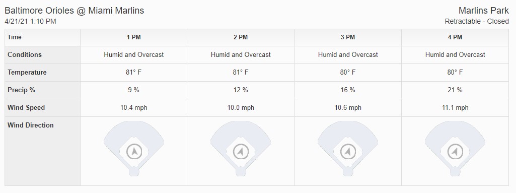 Below, you can find the full weather forecast for every game played either outside or in a stadium with a retractable roof. Most games will also get a Weather Rating, which helps you determine how hitter-friendly we've determined the weather for that game to be, courtesy of our Fantasy Labs Player Models. The higher the score, the more hitter-friendly it is.
