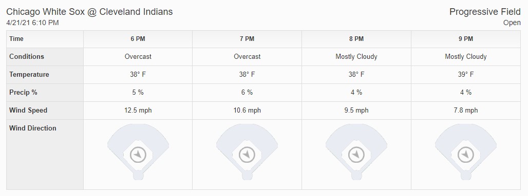 Chicago White Sox at Cleveland Indians, 6:10 p.m. ET
