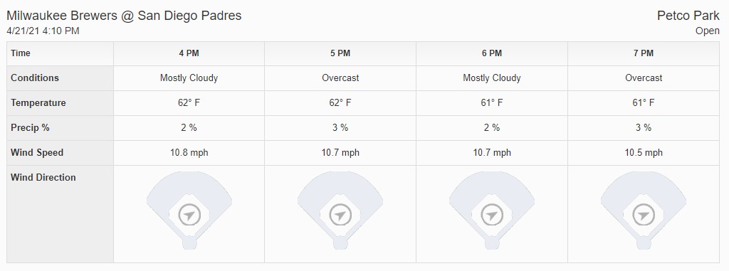 Milwaukee Brewers at San Diego Padres, 4:10 p.m. ET