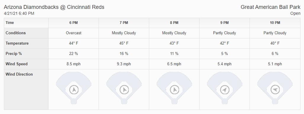 Arizona Diamondbacks at Cincinnati Reds, 6:40 p.m. ET