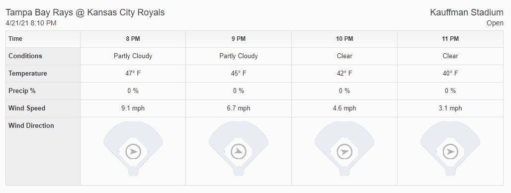 Tampa Bay Rays at Kansas City Royals, 8:10 p.m. ET