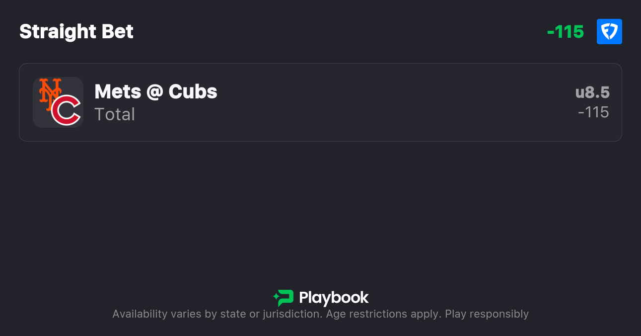 My Mets vs Cubs best bet is on the Under. Make sure to find the best odds by checking our live MLB odds page.