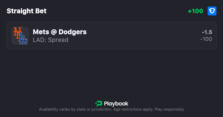 - Mets vs Dodgers moneyline: Mets +175, Dodgers -210