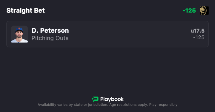 - Mets vs Giants Pick: David Peterson Under 17.5 Outs Recorded -120 | Play to 16.5