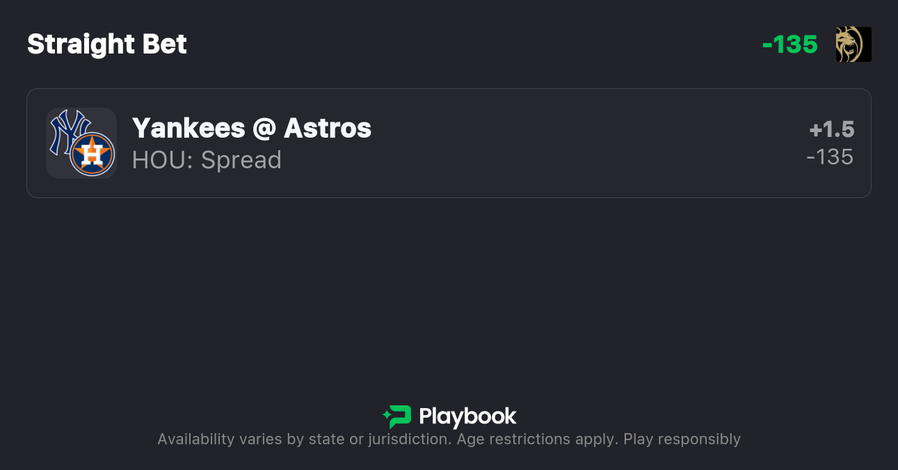 - Yankees vs Astros Pick: Astros +1.5 (-135)