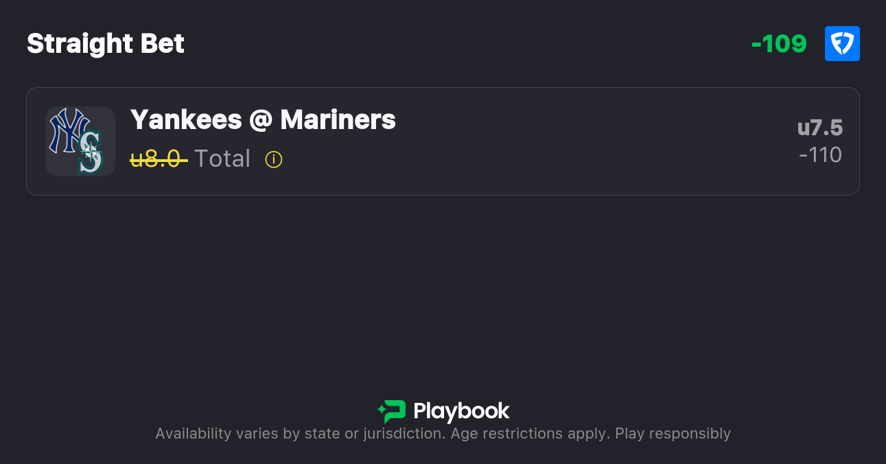 • Yankees vs Mariners over/under: 7.5 (-115o / -105u)