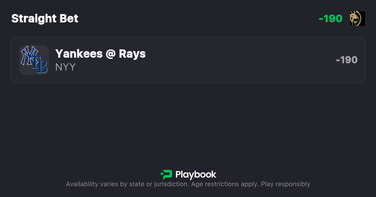 - Yankees vs Rays Pick: Yankees ML (-190)