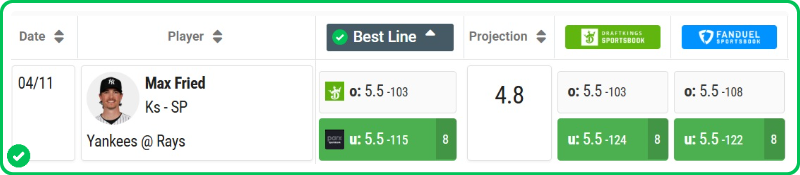 Action PRO projects Fried for 4.9 strikeouts today.