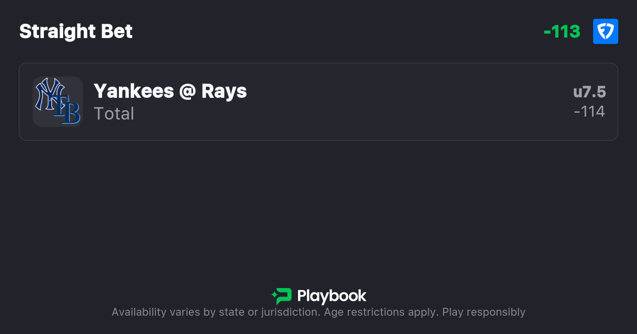 - Yankees vs Rays Pick: Under 7.5