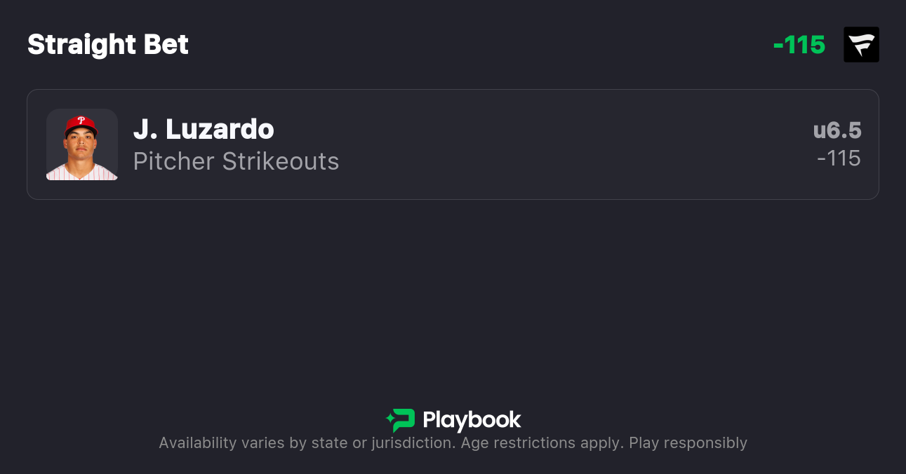 - Phillies vs Rockies Pick: Jesus Luzardo Under 6.5 Strikeouts (-115)