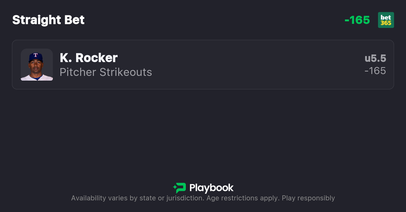 Let’s back the Under 5.5 strikeouts on Kumar Rocker tonight against the Pirates. The matchup and early-season trends both point to a lower-K outing for the right-hander.