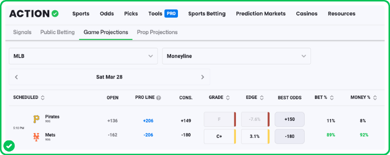 As a reminder, you can see all of Zerillo's MLB game projections with an Action PRO Subscription. Find his projected lines every day on the PRO Projections tab.