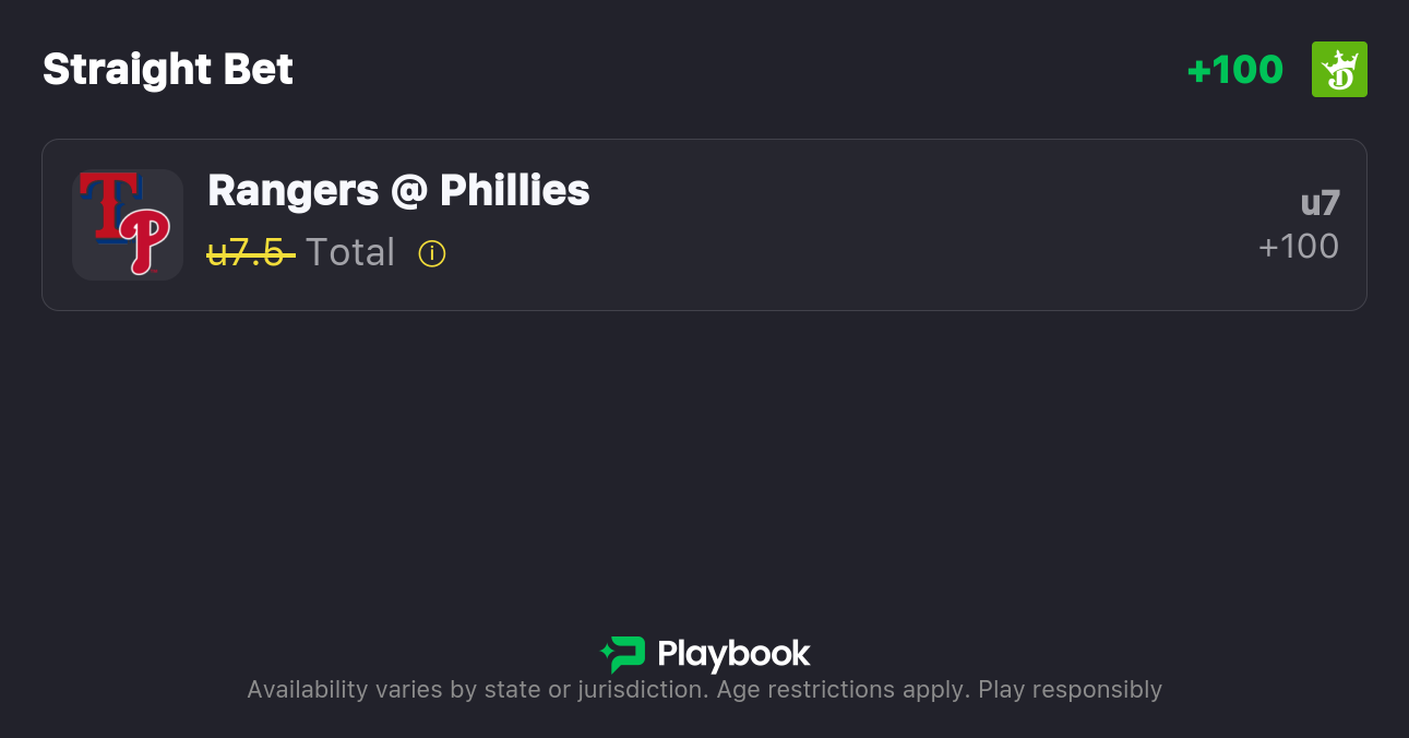 - Rangers vs Phillies Pick: Under 7.5