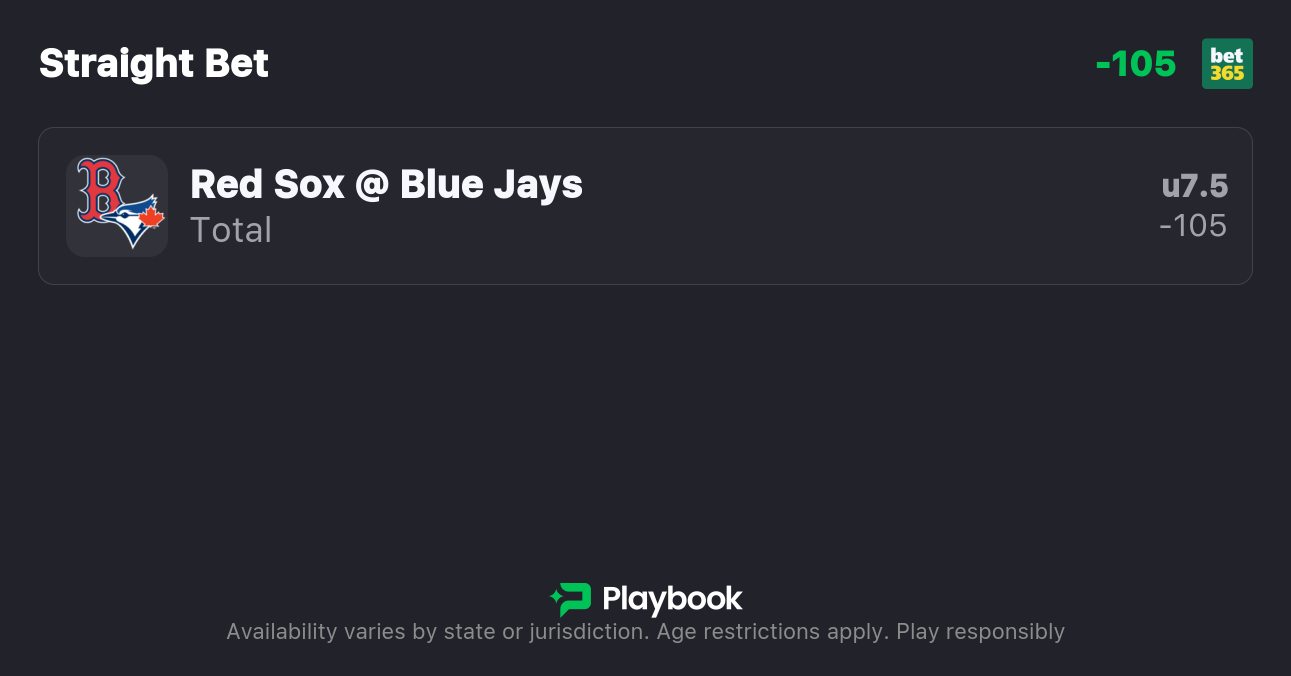 - Red Sox vs Blue Jays Pick: Under 7.5 Runs