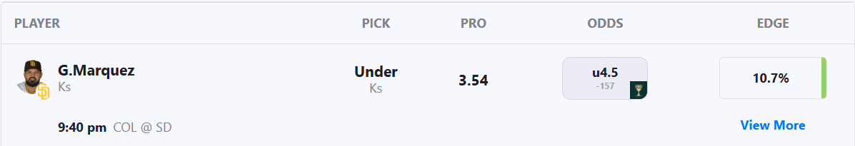 - Rockies vs Padres Pick: German Marquez Under 4.5 Strikeouts