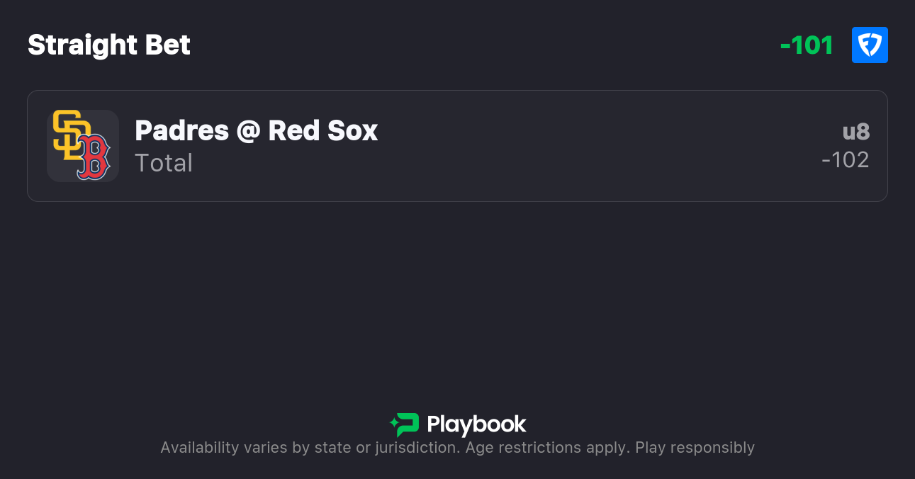 - Padres vs Red Sox over/under: 8 (-120 / -102)