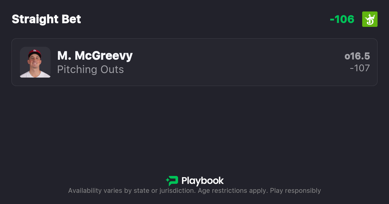 Pick: Michael McGreevy Over 16.5 Pitching Outs (-107)