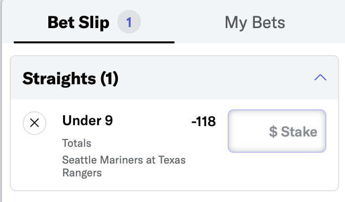 My Mariners vs Rangers best bet is the game total to stay under 9. Make sure to find the best odds by checking our live MLB odds page.