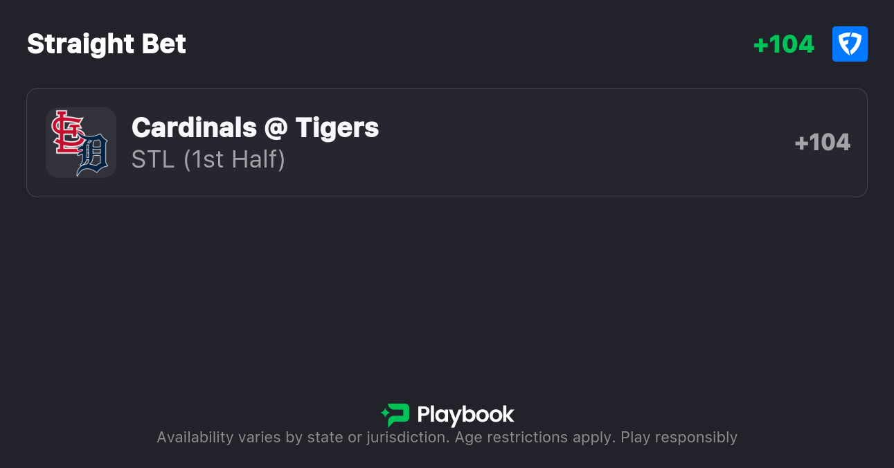 - Cardinals vs Tigers Pick: Cardinals F5 ML (+104)