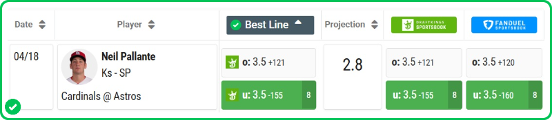 First, he’s failed to strike out more batters than he’s walked in any of his three starts (-1.4 K-BB%). Action PRO projects Pallante for just 2.8 strikeouts.