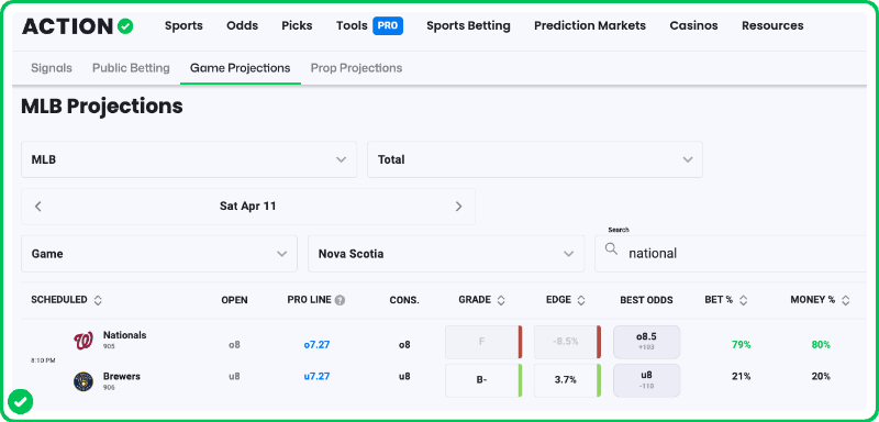 As a reminder, you can see all of Zerillo's MLB game projections with an Action PRO Subscription. Find his projected lines every day on the PRO Projections tab.