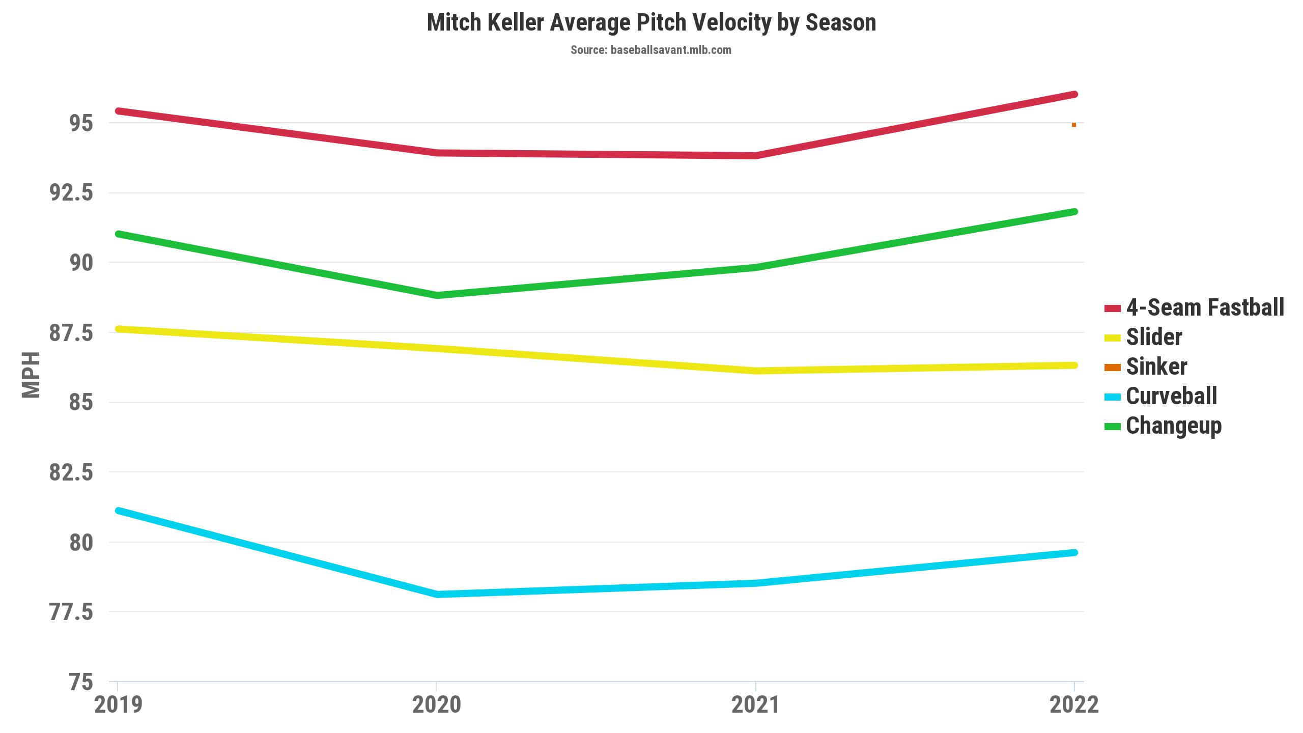 The effectiveness of Mitch Keller is up for debate. What isn't is his velocity, as his average four-seam has jumped two ticks year-over-year.