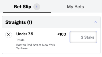 My Yankees vs Red Sox best bet is the game total to stay under 8 runs. Make sure to find the best odds by checking our live MLB odds page.