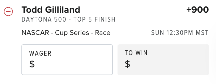 My favorite early bet for the Daytona 500 is the same one I gave in my Super Bowl LX cross-sport parlay, which, at 33-1, is still alive! That's Todd Gilliland at 9-1 for a Top-5 finish.