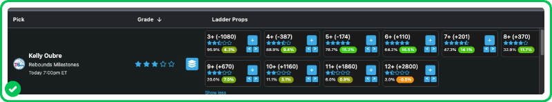 We expect Oubre to play with max urgency, and Pick Labs is showing a significant edge on his rebounds milestone props: