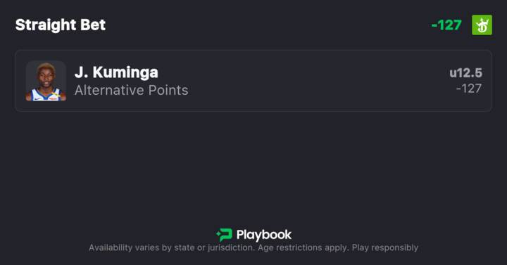 - Jonathan Kuminga Under 12.5 Points (-125)