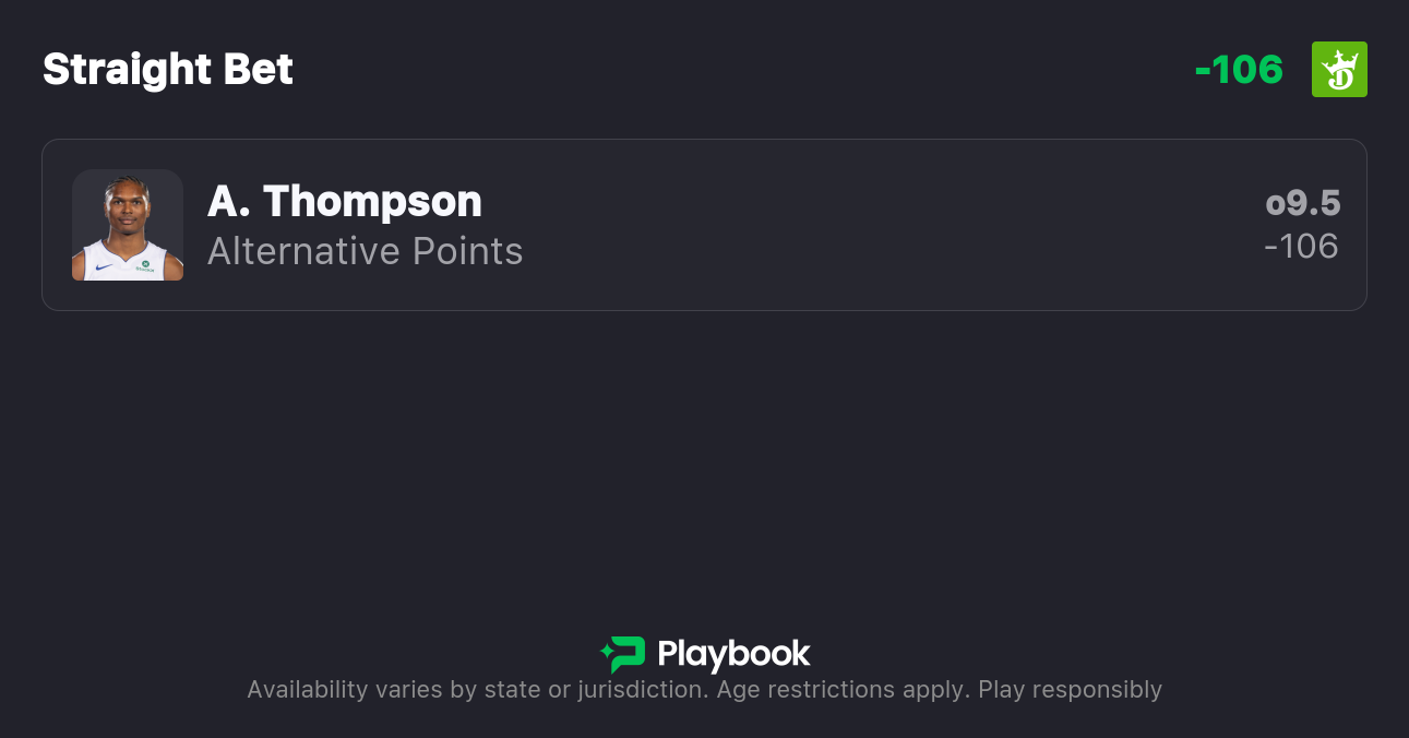 Thompson has only surpassed this line in four of his past 10 games — but he will be playing at home tonight, where he thrives.