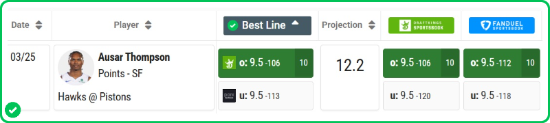 - Hawks vs Pistons pick: Ausar Thompson Over 9.5 Points (-106)