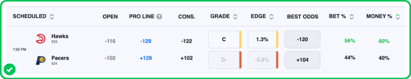 Our Pacers vs Hawks best bet is on Atlanta to win outright on the moneyline at -120. Make sure to find the best odds by checking our live NBA odds page.