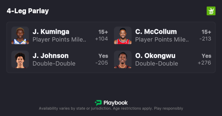 However, Kuminga scored 20 points on Sunday with Johnson back. Additionally, while a Warrior, Kuminga scored 20 points in three of his last four games against the Bucks, averaging 20.5 per game.